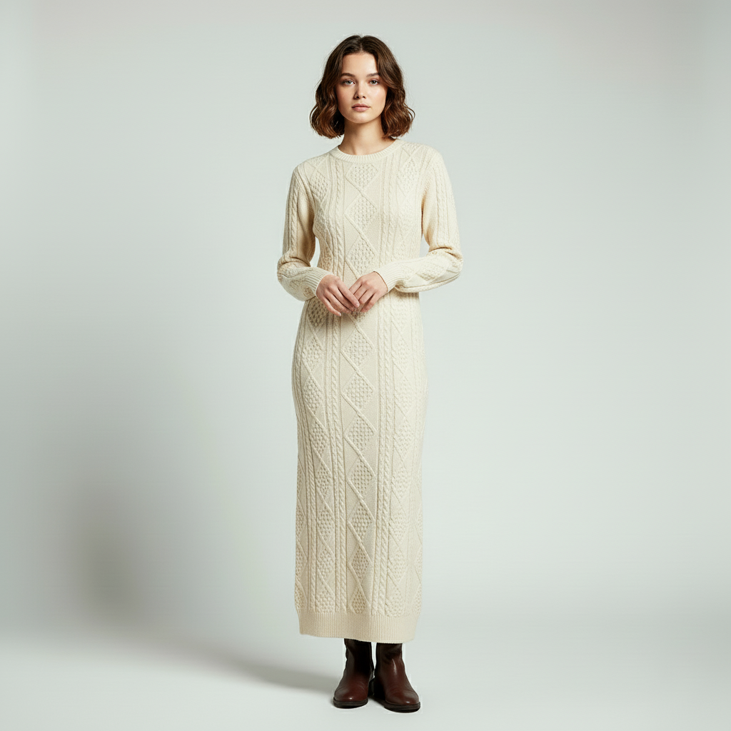 Looking for warmth and sophistication in one piece? This cable knit dress delivers timeless fashion appeal with a soft, figure-flattering design that transitions seamlessly from day to night. The cozy knit texture adds depth and comfort while still keeping your look refined. Whether paired with boots or layered for cooler days, it brings effortless versatility to your wardrobe.